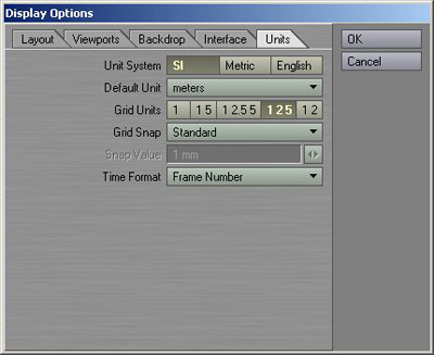 There are a few more things we are going to change in the Display Options Panel, so hit "d" once more to bring it up again. Click the last Tab - "Units", then use the settings shown in picture 8.