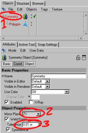 1. Make sure SYMMETRY is selected and if the object is mirroring the wrong way 2. CHANGE this to tell it which plane to mirror the object in, for this ZY works....also 3. This is the tolerance of WELDING the seam down the middle between the two halves.