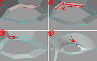 1. POINT MODE, 2. the MOVE tool and 3. I hold CTRL and click to create some more points to build the forehead faces with, as you can see 4. I drag the POLYGON object out of the SYMMETRY to see it in plain flat polys, then drop it back in to smooth it!