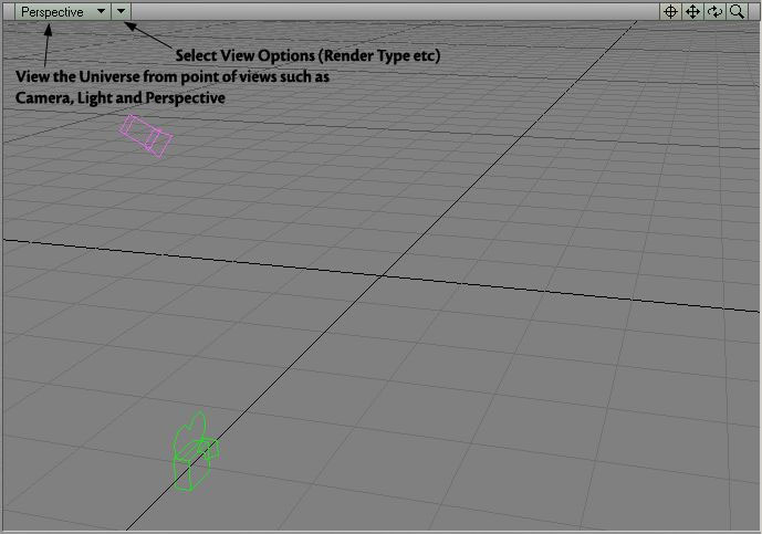 As I mentioned before, the Layout is used for completing your scenes. This is where you load in the objects you've created, edit lights & cameras, animate things etc. As in Modeler, you can now customize almost everything to fit your own needs. Menus, Tabs and Viewports amongst other things are now editable. I prefer the default settings with one single Viewport, but if you'd like to try your own settings then you'll find various options in the "Display Options" Panel, you'll reach it by hitting "d" on your keyboard. The Lightwave Universe This is where the objects you load in ends up, and you can view the universe from several different ways, such as from the Camera and from the Lights point of view. Picture 27 shows the Universe. The Properties Panel We will start by loading in the objects we created. This will make it a bit easier for me to explain the different stuff in Layout. To the left where the Toolbar is you should see an "Add" button. Click that one, then select "Objects -> Load Object". You will be represented with a requester, so browse to the folder where you saved your object earlier and load it into Layout. Picture 28 shows the Layout after the object has been loaded. The "Objects" Item is selected by default when you load Layout up, and now that we have objects in our scene, we can also access the Properties Panel for the Objects. All 4 Items (Objects, Bones, Lights and Cameras) have a Properties Panel, and we will take a closer look at them now. Object Properties Keep the "Objects" Item selected and hit "p" on your keyboard to bring up the Properties Panel, you can also access the Panel by clicking the "Item Properties" button at the bottom of Layout. The Panel that comes up should look like picture 29.